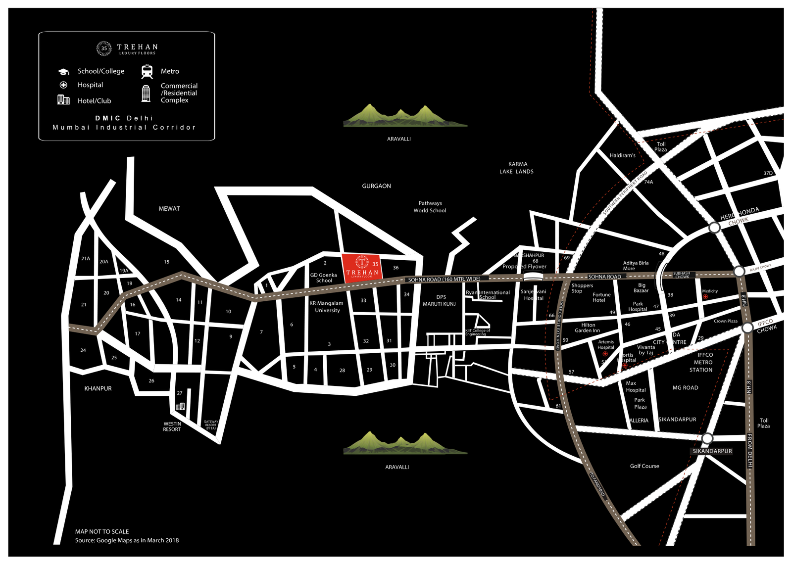 • Trehan Floors Sector 35 Sohna is bang on Sohna Road, a wide 160-meter Road.